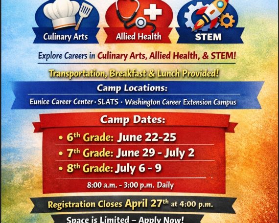 ExxonMobil is sponsoring a Career Exploration Camp for St. Landry Parish public school students in grades 6, 7, and 8.